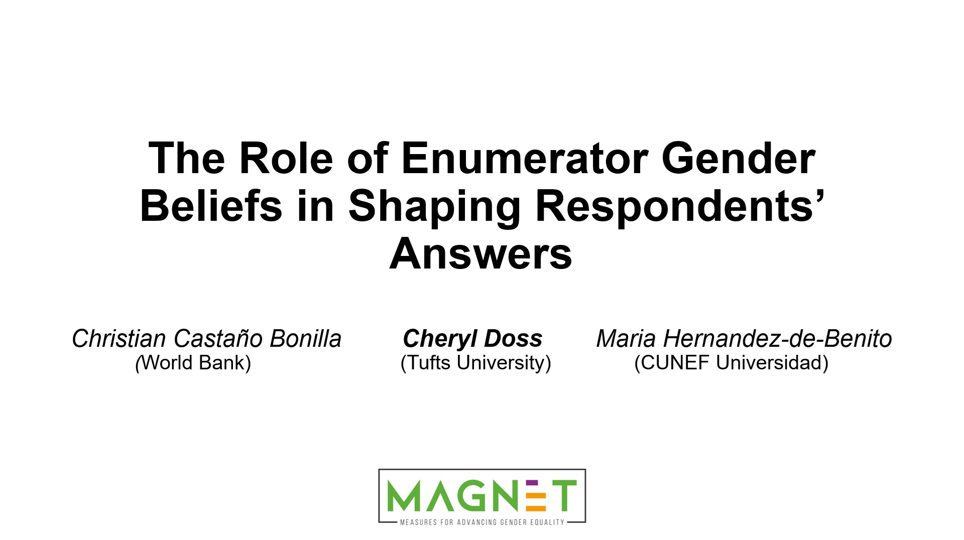 Cheryl Doss (Tufts University) presented new MAGNET research at the Comparative Survey Design and Implementation (CSDI) workshop in April 2025 in Skopje, North Macedonia. Drawing on survey research from several sub-Saharan countries and cross-country validation work, Cheryl Doss highlighted how enumerator beliefs and the definition of “ownership” can reshape measures of women’s agency during the session Enhancing the Quality of Gender Data: Innovations in Survey Design, Measurement, and Validation.
