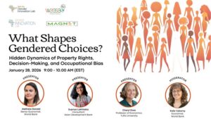Three MAGNET researchers presented work on gender measurement at the virtual seminar "What Shapes Gendered Choices? Hidden Dynamics of Property Rights, Decision-Making, and Occupational Bias," co-hosted by the South Asia Gender Innovation Lab, the Africa Gender Innovation Lab, and the Women's Economic Empowerment in South Asia (WEESA) Community of Practice on January 28, 2026. Kate Vyborny (Economist, World Bank) moderated the session.